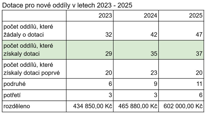 V rámci hojně využívaného dotačního programu je každoročně rozděleno okolo půl milionu korun mezi 4 desítky oddílů. Termín pro podání žádosti je 28. února.