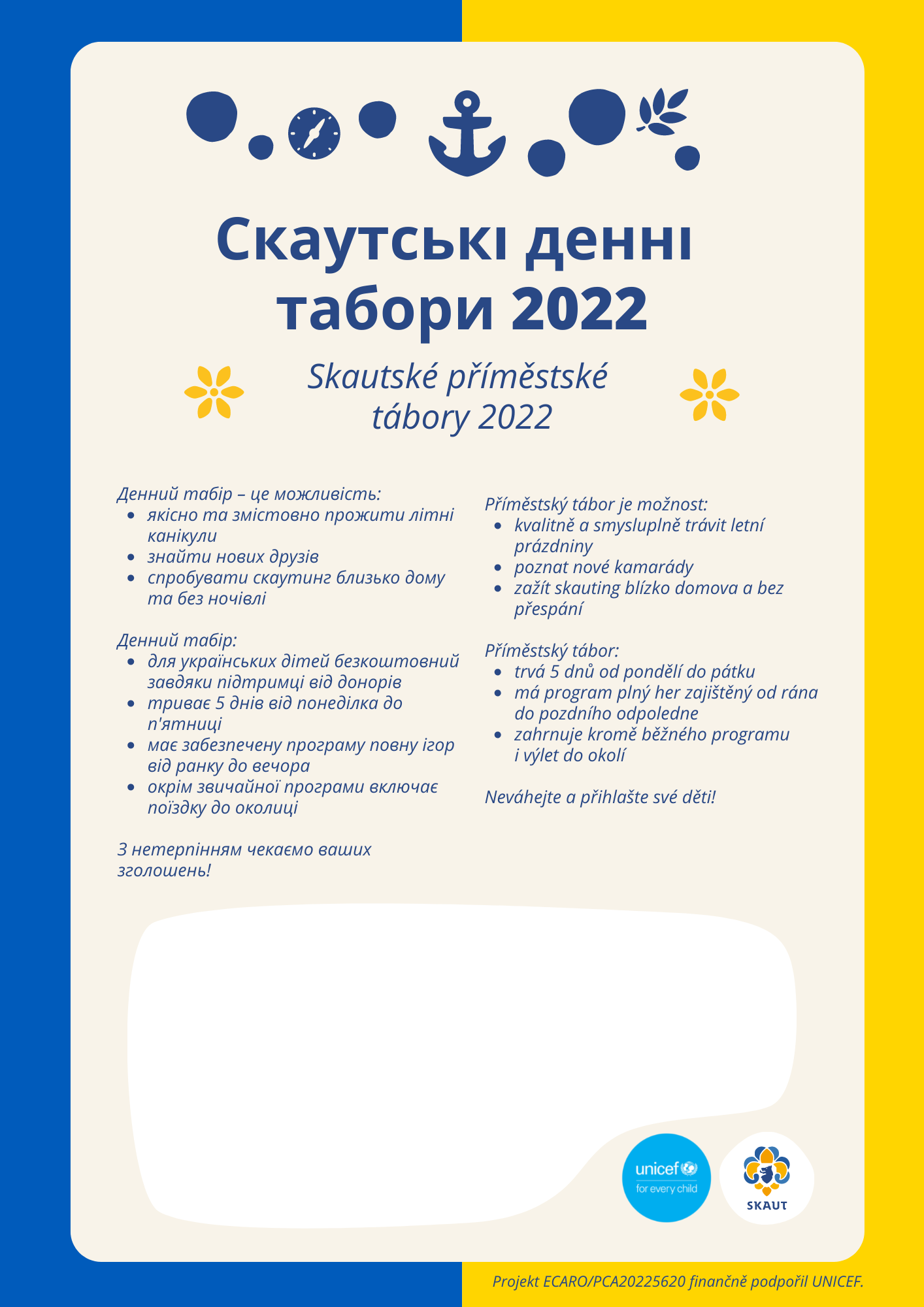 Pokud nemáte praxi s hrazením osobních nákladů (mzdy, DPP) a pořádáte příměstský tábor, neváhejte se nám ozvat na email ukrajina@skaut.cz , rádi vám poradíme.